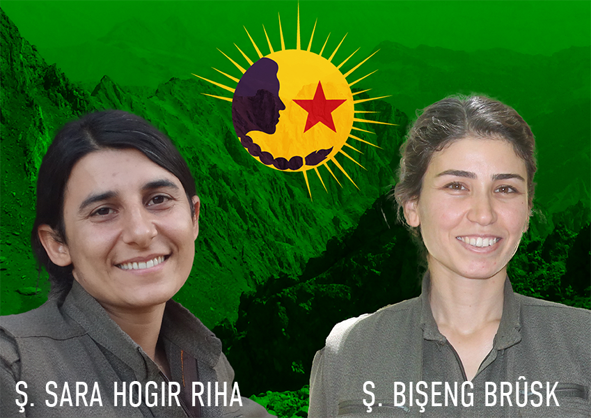 Endama Koordînasyona Komalên Jinên Ciwan û Komîteya Ciwanan a PKK’ê Bişeng Brûsk û Endama Rêveberiya Komalên Jinên Ciwan- Komalen Ciwan rêheval Sara Hogir Riha ku di nava şerekî dijwar de bi pêşengiya fedaî ya Tevgera me ya Azadiya Kurdistanê û Şoreşa Jinên Azad re pêşengî kiribûn di 28’ê Tîrmeha 2023’an de ji aliyê dewleta Tirk a qatil-faşîst ve li Herêmên Parastinê yên Medyayê di encama êrîşên hewayî yên dewletê de şehîd bûn!